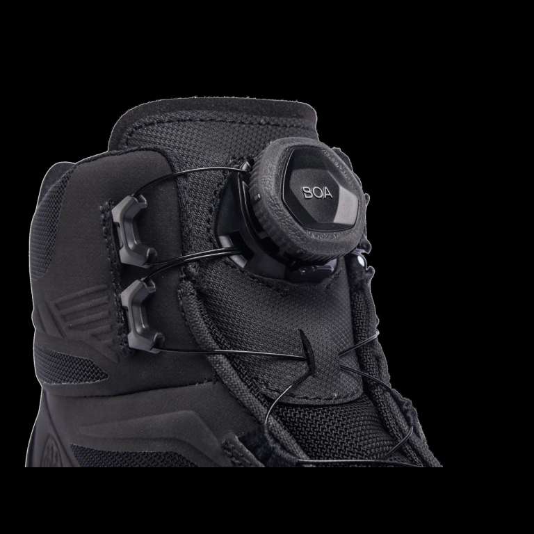 Універсальні тактичні черевики Wolf BOA®, розроблені для використання у міських умовах, надзвичайно міцні та легкі для повсякденного використання. Застібка BOA®, вбудована в язик, оснащена системою Lace Stop, полегшує посадку та регулювання за будь-яких умов. Верх із Cordura® забезпечує чудову повітропроникність; локально посилений конструкційними та антиабразивними полімерними вставками, виконаними за технологією HF. Устілка Ortholite® та підкладка з 3D-сітки забезпечують гігієну та відведення поту. Підошва Vibram® Omnify амортихує під час ходьби, поглинає удари та забезпечує зчеплення на всіх поверхнях.