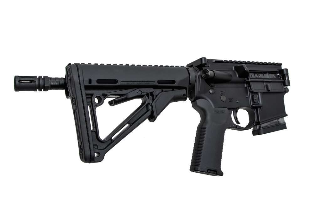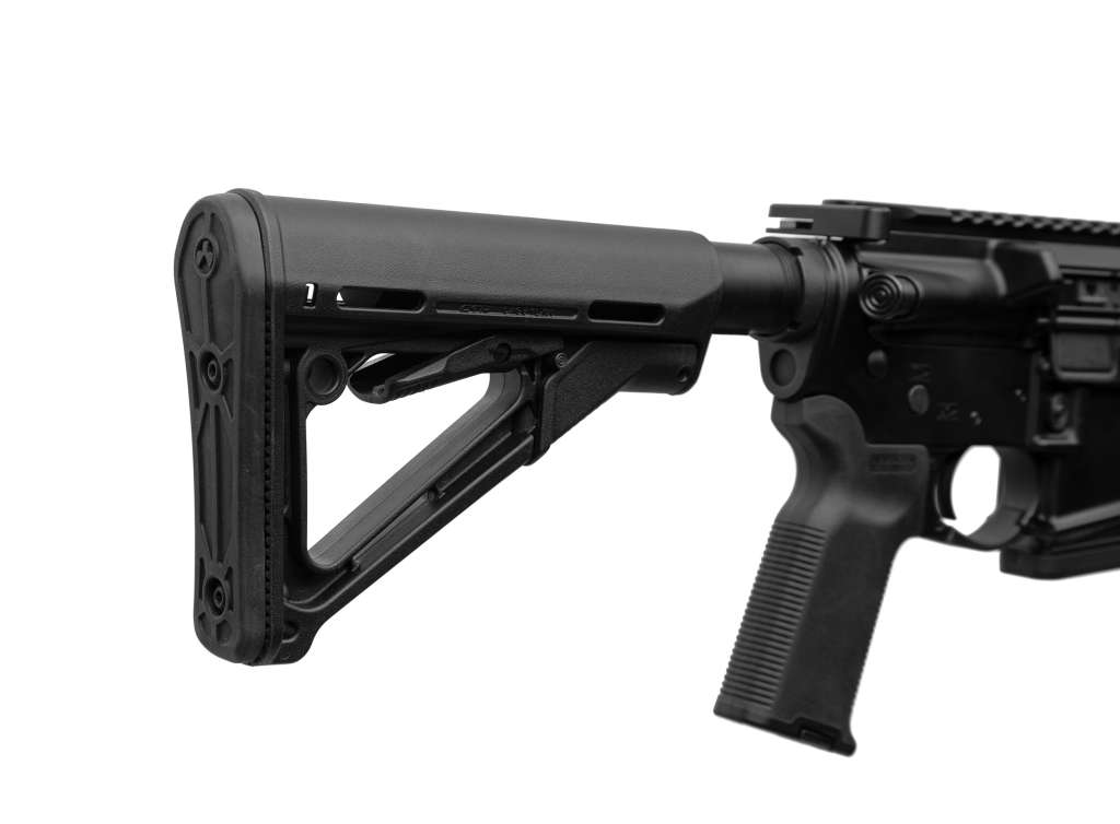 Регульований у 6 положеннях по довжині приклад-Magpul CTR. Приклад оснащений гумовим потиличником та кріпленням під QD антабку.