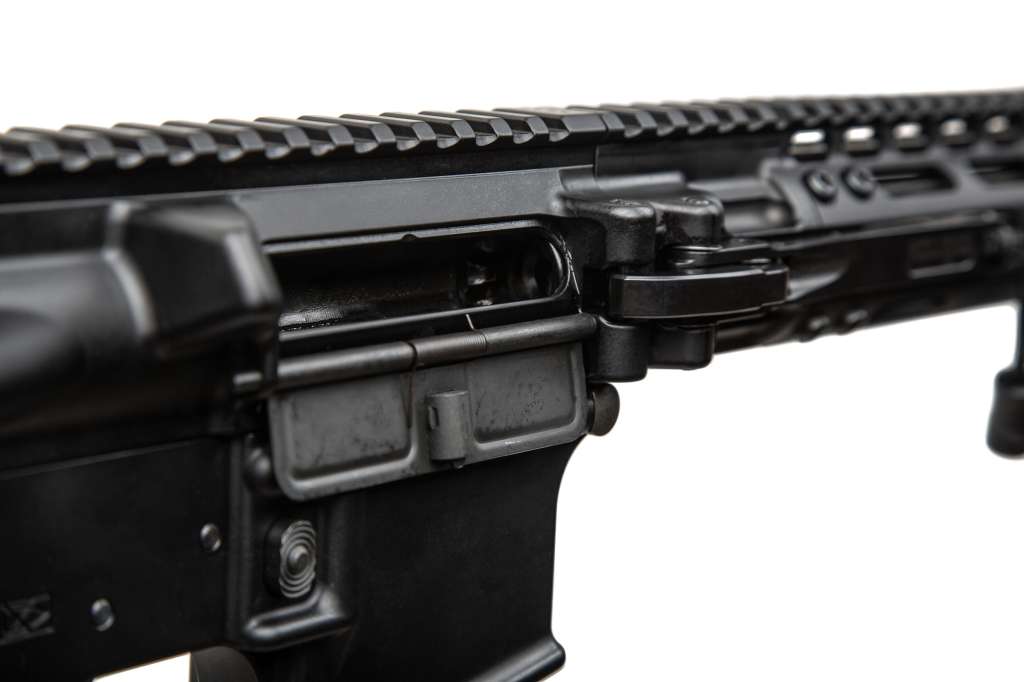 На карабін встановлено алюмінієву цівку довжиною 15'', з планкою Пікатінні на всю довжину та слотами кріплення M-lok.