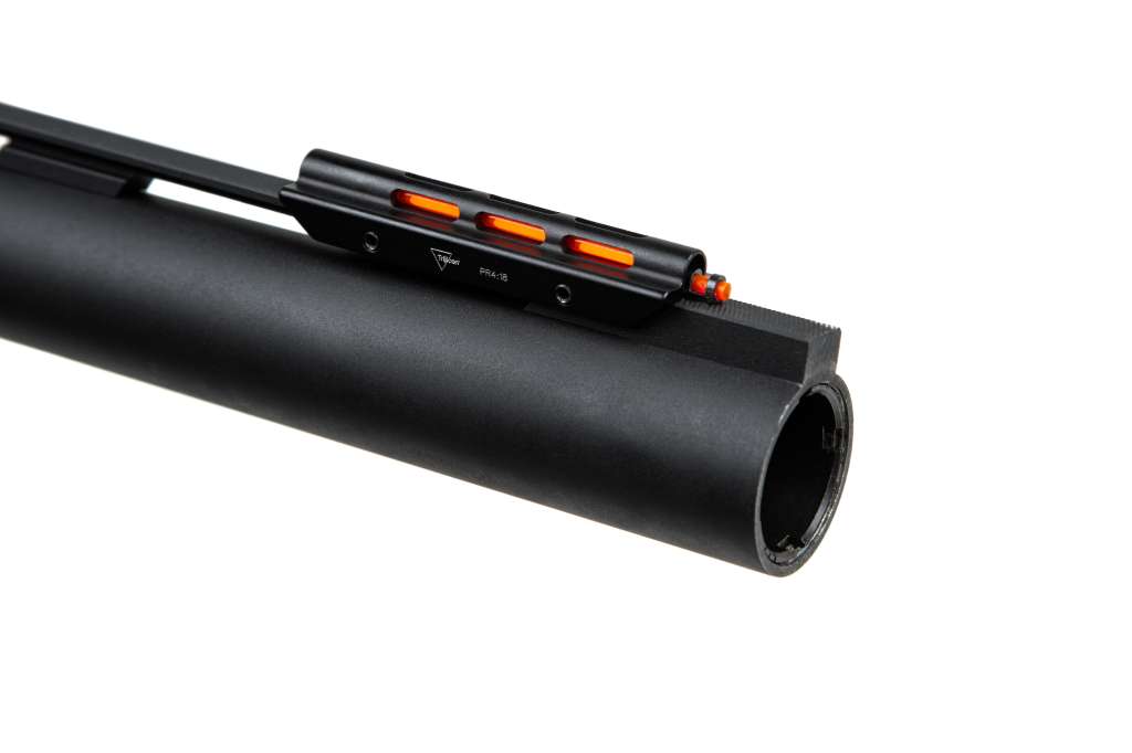 Мушка спеціально розроблена для рушниць з шириною вентильованої прицільної планки - 6,7 - 8,5 мм (0,265-0,335 дюйма), у тому числі таких популярних брендів рушниць, як Benelli, Beretta, Browning і Winchester. Червоний оптоволоконний накопичувач збирає навколишнє світло, забезпечуючи ідеальну точку прицілювання навіть у несприятливих умовах освітлення, таких як сутінки. Волокно допомагає рівномірно розподіляти світло. Яскрава та міцна мушка ідеально підходить для тактичних та оборонних завдань, а також може добре використовуватись при полюванні. Корпус мушки виготовлений з анодованого алюмінію 6061-T6, що витримує віддачу рушниці.