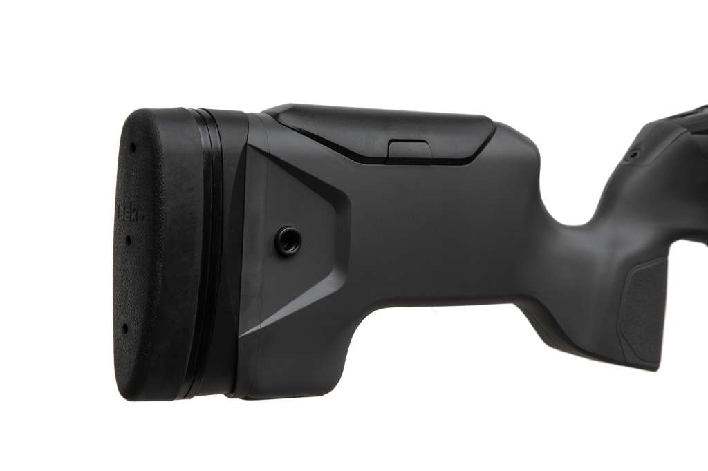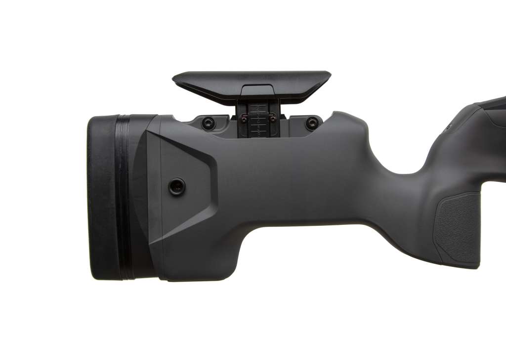 Довжина прикладу регулюється за допомогою спеціальних проставок що йдуть у комплекті, а гребінь прикладу регулюється по висоті в залежності від анатомічних особливостей стрільця для максимально комфортної вкладки.