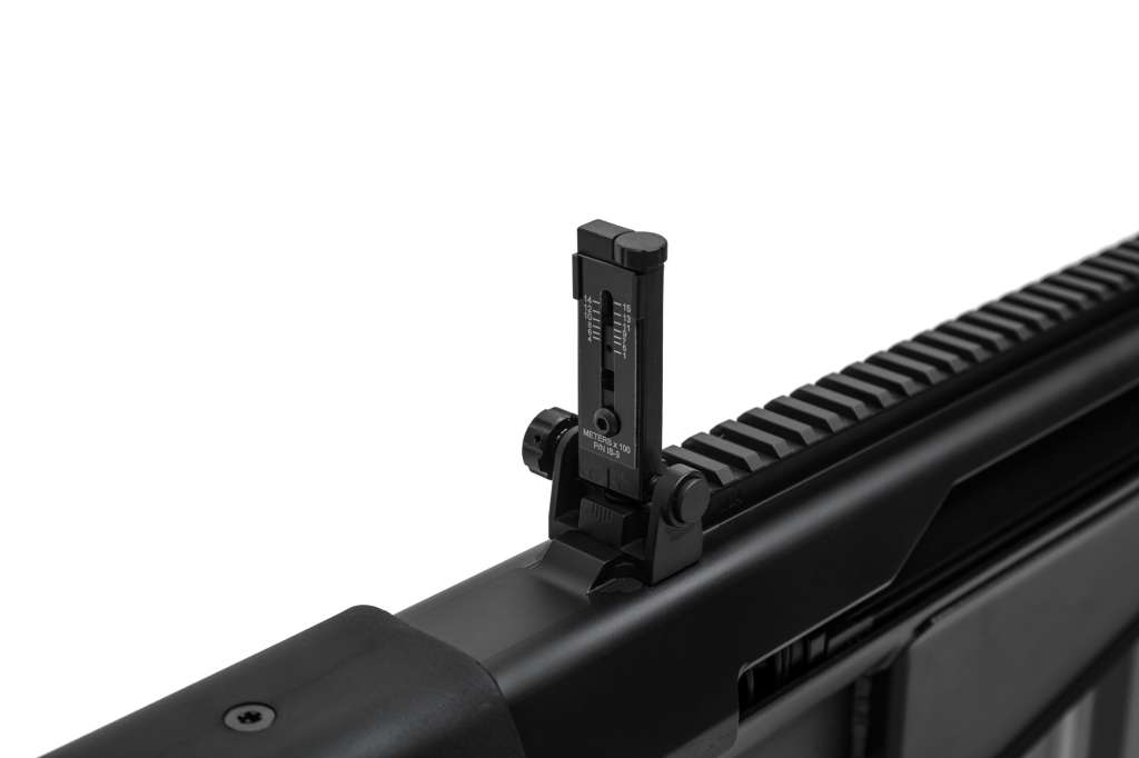 У комплекті базово йдуть відкриті прицільні пристрої, виконані з металу.