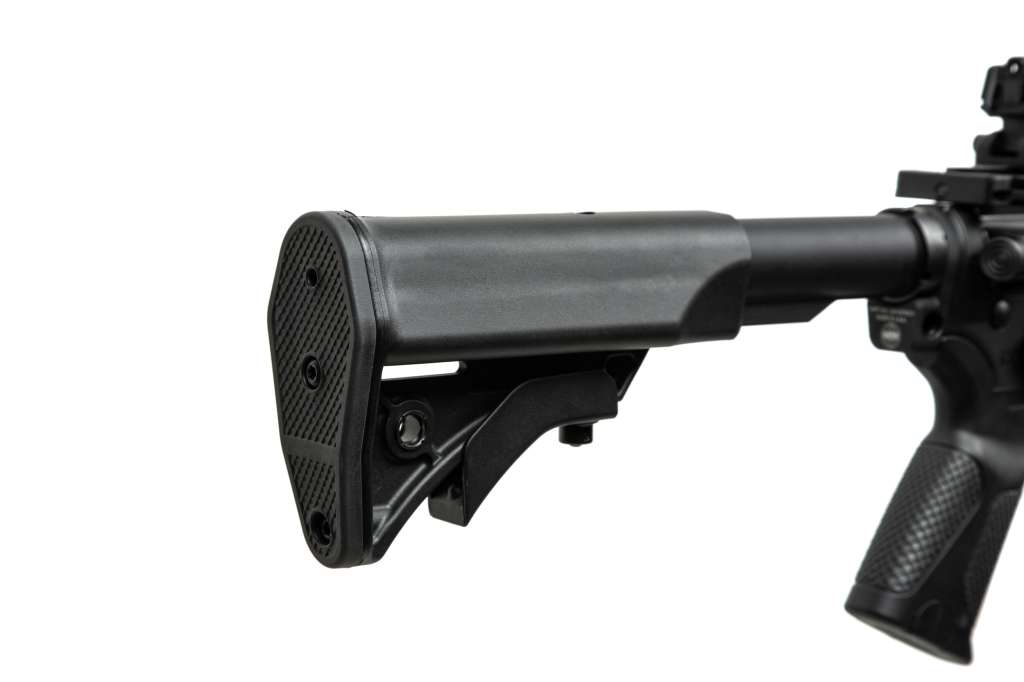 - приклад LWRCI, регульований по довжині 6 положеннях. На прикладі встановлено отвір під антабку QD.