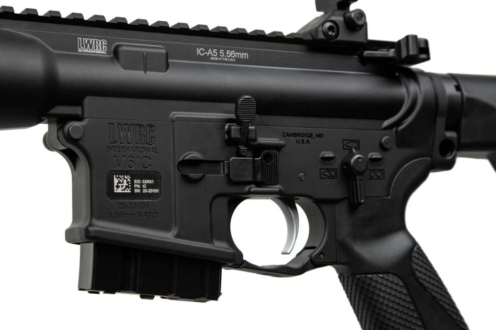 - в даному карабіні представлена система УСМ власного виробництва-LWRCI Enhanced Fire Control Group. Складові УСМ піддаються рентгенівському випромінюванню на наявність дефектів, мають нікель-борне покриття, що забезпечує плавне, чітке натискання спускового гачка із чітким ресетом. На карабіні встановлено збільшену скобу УСМ. Зусилля натисканя на спуск складає 2,1 кг.