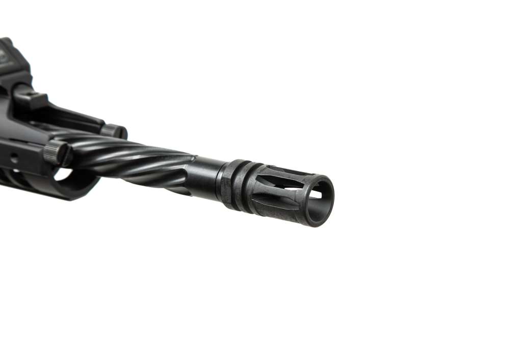 - канюльований ствол виробництва LWRCI довжиною 16 дюймів виготовлений зі сталевого сплаву 41V45 методом холодного кування, обробленого за технологією перетворення поверхні NiCorr™. На кінці ствола встановлено полум'ягасник A2, також власного виробництва. Дульна різьба 1/2-28. Твіст ствола 1:7. Стволи LWRCI краще витримують екстремальне використання, ніж стандартні стволи, без погіршення точності.