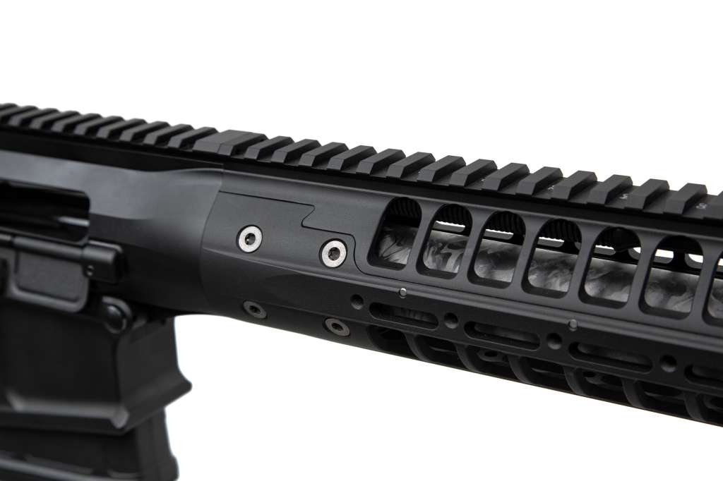 - ствол виробництва Proof Research довжиною 22" обернений вуглецевим волокном з твістом 1:8. На кінці ствола встановлено 4-х портовий ДГК Ultra Muzzle Brake виробництва LWRCI. Дульна різьба 5/8-24. Контур ствола Heavy.