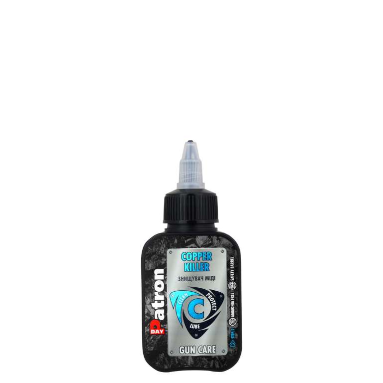 Знищувач міді - миттєво вступає в реакцію і видаляє відкладення міді та її сполуки після пострілу, у всіх типах зброї, малого та великого калібру. Ефективно нейтралізує будь-які корозійні залишки, короткостроково запобігаючи появі іржі та корозії. Безпечний для використання в стволах з нержавіючої сталі та інших типів. Не вступає в реакцію з металами з яких виготовлена зброя.