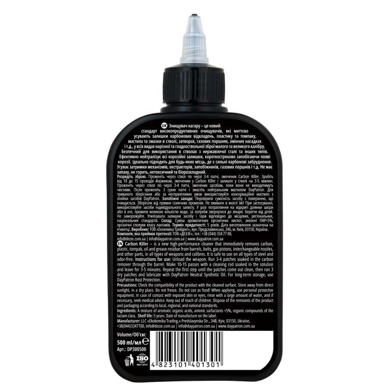 Знищувач нагару - це новий стандарт високопродуктивних очищувачів, які миттєво усувають залишки карбонових відкладень, пластику та томпаку, мастила та змазки в стволі, затворах, газових поршнях, змінних насадках і т.д., у всіх видах нарізної та гладкоствольної зброї малого та великого калібру. Безпечний для використання в стволах з нержавіючої сталі та інших типів. Ефективно нейтралізує всі корозійні залишки, короткостроково запобігаючи появі корозії. Ідеально підходить для будь-яких місць, де є сильні карбонові забруднення. Усуває затримки механізмів, екстракторів, запобіжників, газових поршнів і т.д. Не має запаху, не горить, нетоксичний та біорозкладний.