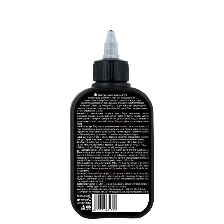 Захист від корозії - унікальний засіб, призначений для захисту при тривалому зберіганні в несприятливих умовах, та застосування в умовах вологого та солоного повітря, на металевих поверхнях всіх видах нарізної та гладкоствольної зброї малого та великого калібру. Швидко