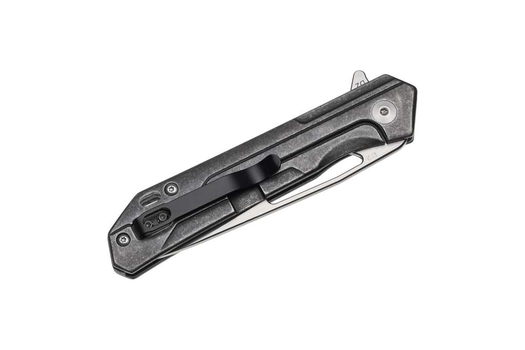 Замок – liner lock. Відкриття ножа відбувається за допомогою плавця-фліпера, чи завдяки стильному підпальцевому отвору. Підшипники у осьовому роблять відкриття ножа швидким та плавним.