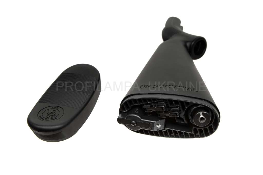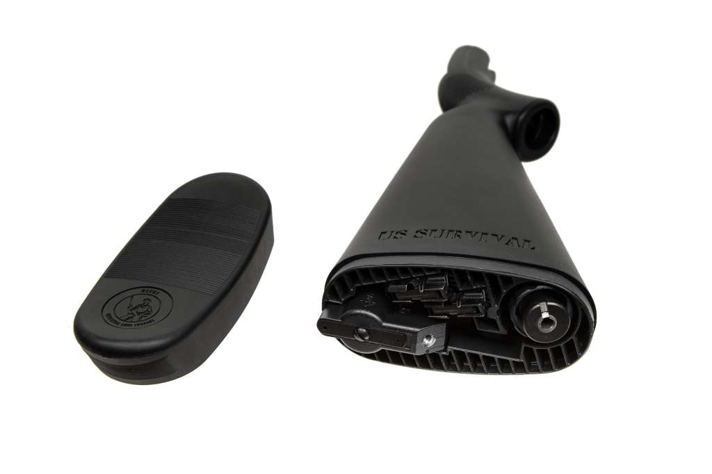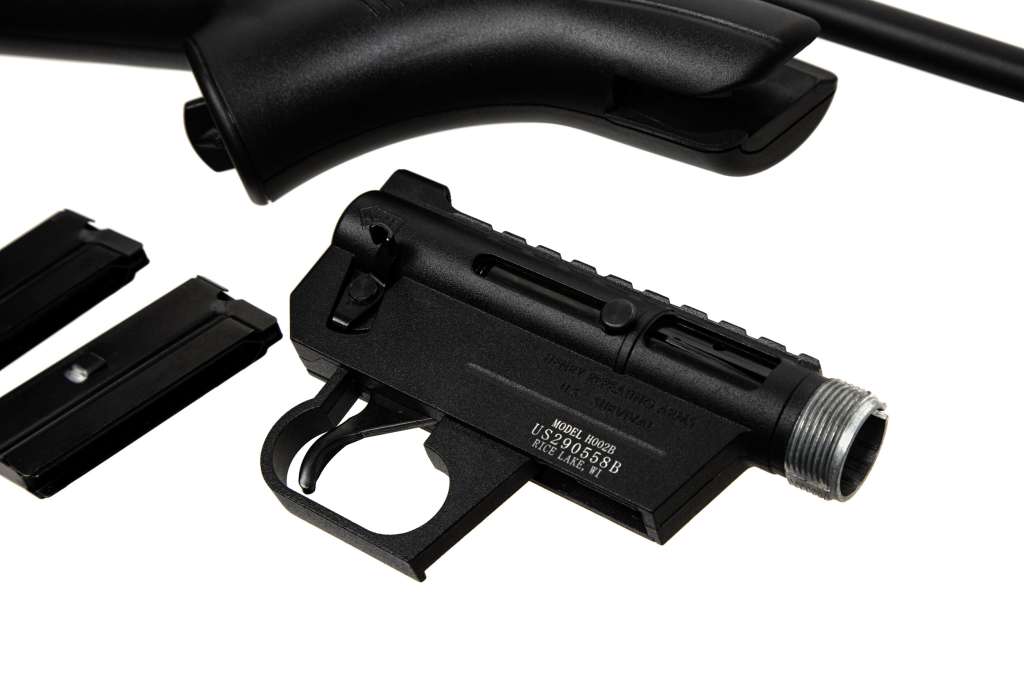 Карабін Henry US Survival .22 LR Black H002B вирізняє в першу чергу продумана конструкція, що забезпечує простоту і швидкість розбирання - збирання та зручність зберігання. У розібраному вигляді, частини зброї розміщуються всередині приклада з ударостійкого, водостійкого матеріалу, що забезпечує їх збереження і чистоту. Складання карабіна відбувається дуже швидко і просто, без додаткових інструментів. Потрібно тільки з'єднати ствольну коробку і приклад, вставити ствол, закрутити гайку - і карабін готовий до застосування.