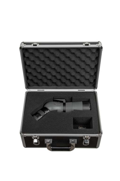 Зорова труба Titanium 65 ED II вміщена в елегантний алюмінієвий кейс, який ефективно захищає трубу під час транспортування. Titanium 65 ED II виготовлена з металу та покрита антиалергенною сіро-зеленою гумою без запаху. Зорова труба повністю водонепроникна, а внутрішня частина заповнена азотом, що виключає проблему запотівання оптичних елементів усередині труби.