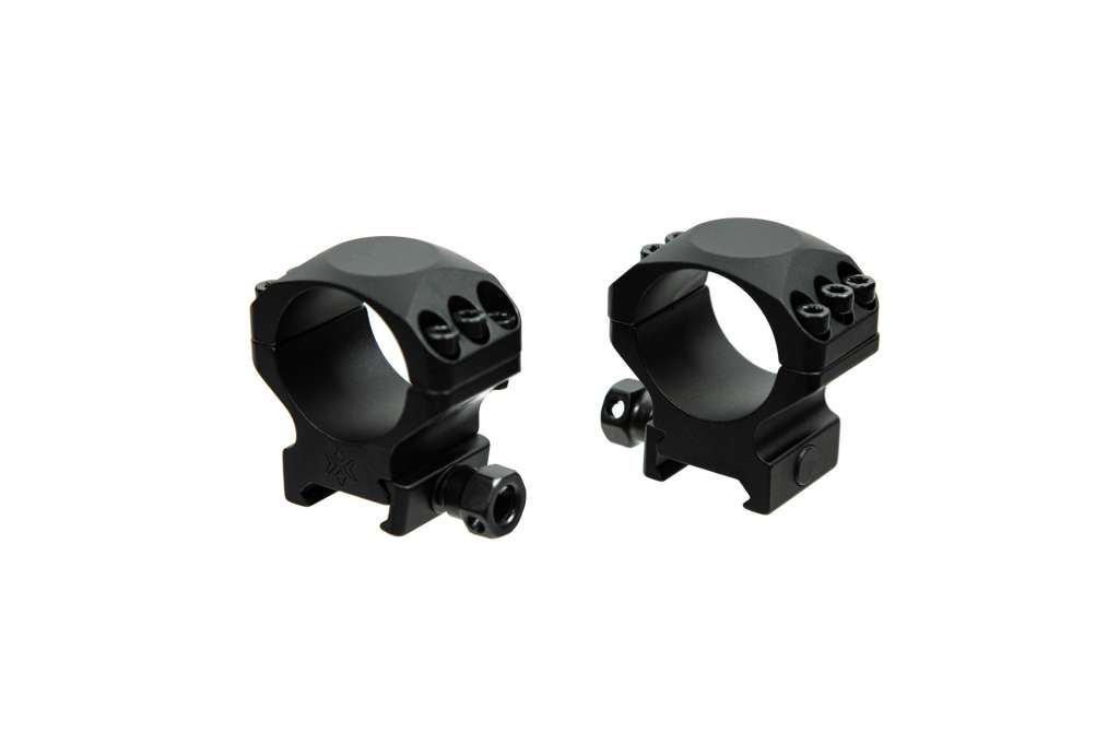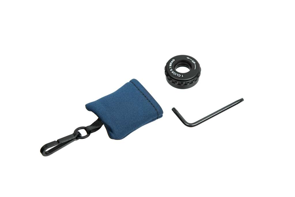 Комплектація: одна пара 30-міліметрових кілець на Пікатінні, запасний барабанчик поправок 1/2MOA, ковпачки для об’єктиву та окуляра, серветка для чищення.