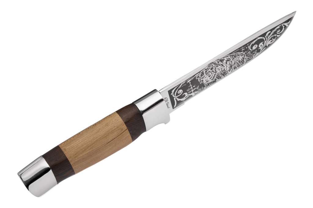Клинок цього ножа виготовлений із нержавіючої сталі марки 420, яка широко використовується у виробництві доступних, але надійних ножів. Однією з головних переваг цього матеріалу є його висока стійкість до корозії. Тому ножі зі сталі марки 420 часто обираються для виготовлення ножів для дайвінгу та туризму. Ці характеристики роблять її ідеальним вибором і для мисливських ножів, які також регулярно опиняються в умовах високої вологості та контактують з біологічними рідинами.