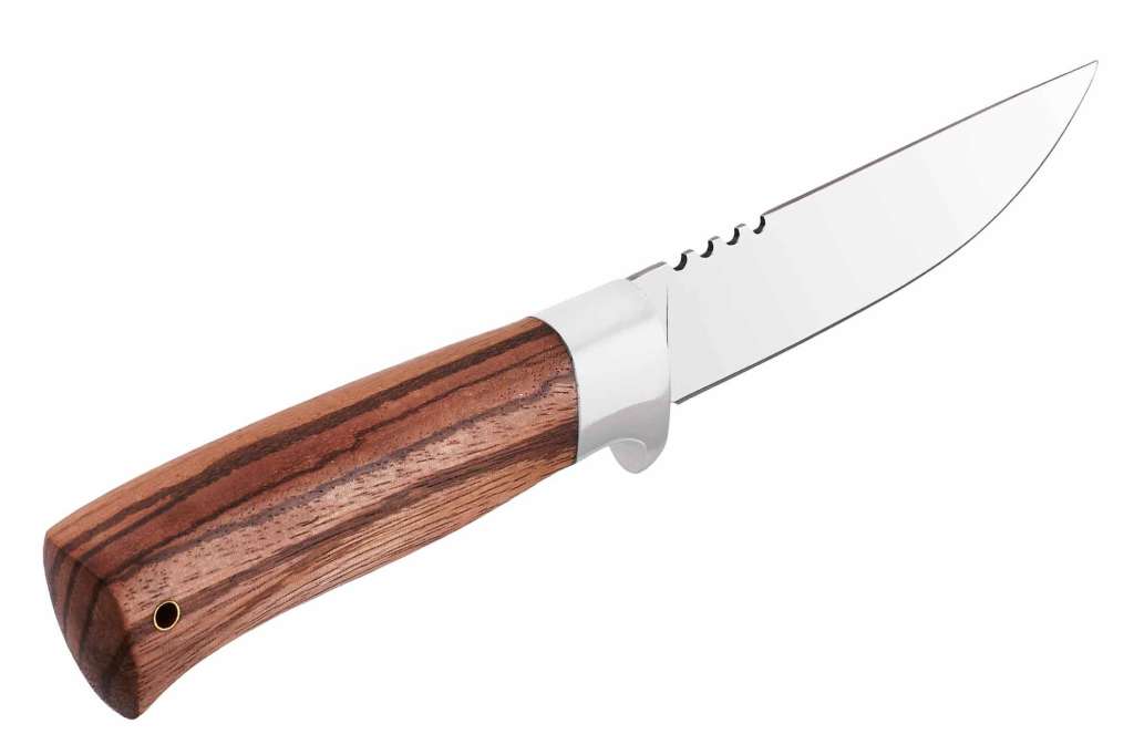 Руківя ножа зроблене з дерева, що пройшло обробку спеціальним хімічними стабілізаторами, після чого воно не боїться вологи та впливу шкідників. Деревина руківя додатково захищене та прикрашене красивим сталевим болестером. Є на болстері і надійний упор для пальців, що виконує функції гарди.
