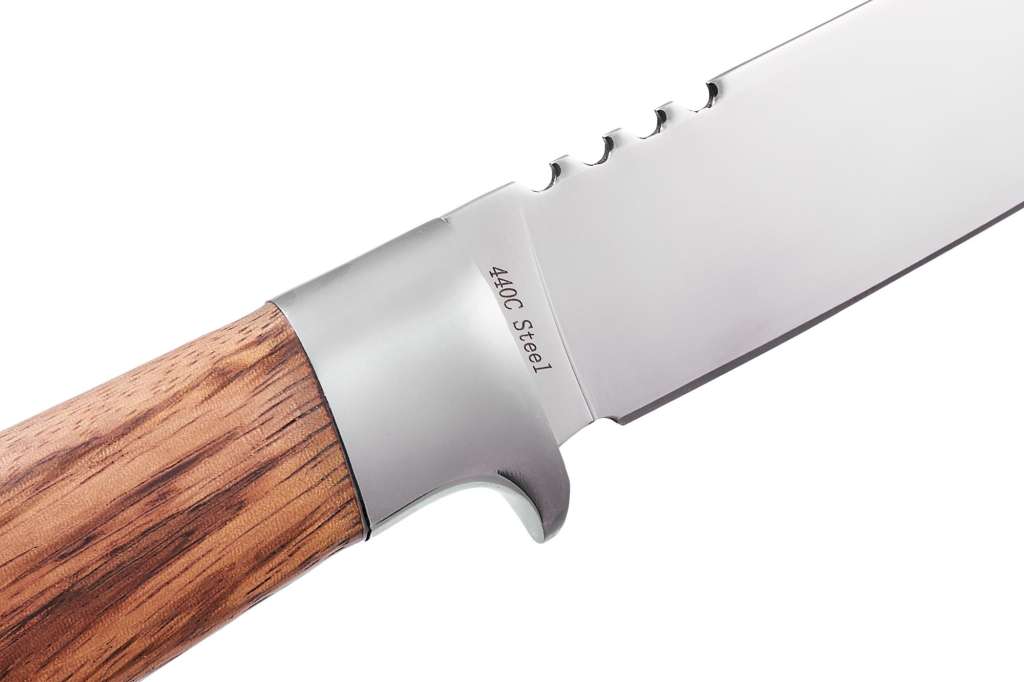 Клинок мисливського ножа 1910-G виконаний з оптимальної за характеристиками нержавіючої сталі 440 С, що характеризується зносостійкістю, стійкістю до корозії та механічних навантажень.Лезо, зроблене із сталі 440 С, добре гостроту і безособливих проблем заточується у домашніх умовах.