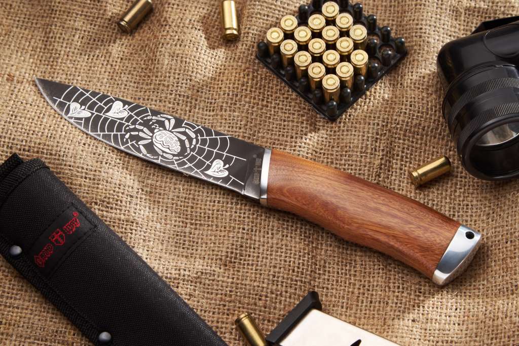 Деревина у якості матеріалу рукояті є не тільки красивим, але й приємним на дотик матеріалом. Воно не остигає на морозі, не розжарюється в спеку, має приємний для ока багатий колір та малюнок і чудово гармонує з декорованим прибором ножа.