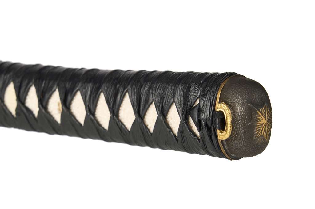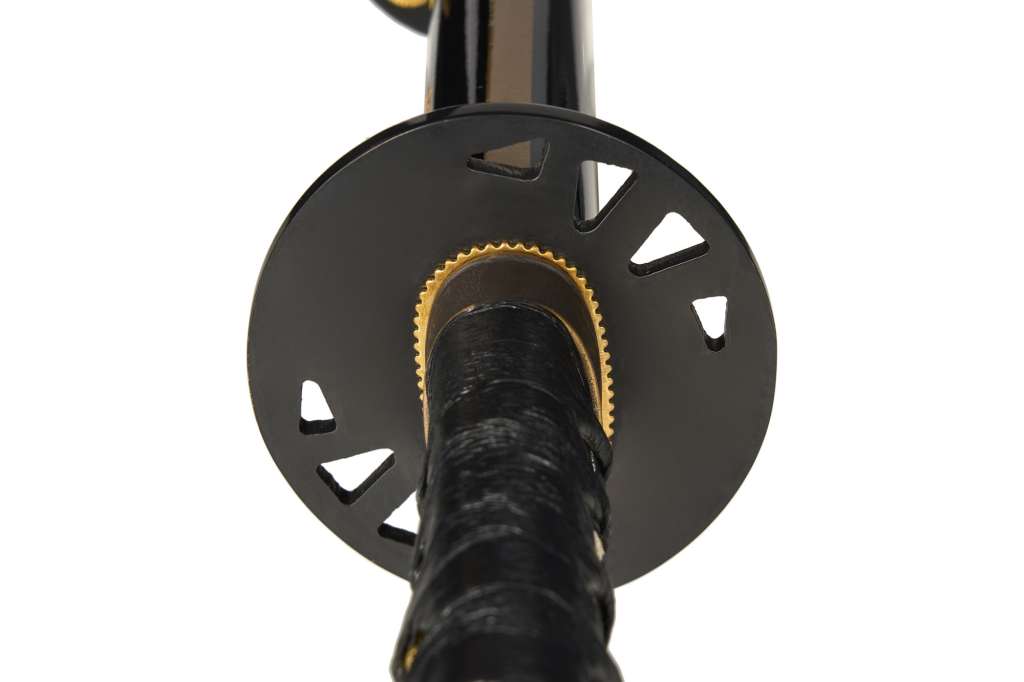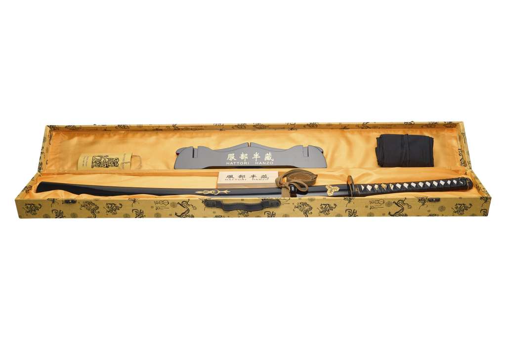 Катана Хатторі Хандзо – гарна, якісно виготовлена сувенірна репліка. Вона багато в чому повторює особливості конструкції справжньої катани доби Едо. Чорні лаковані піхви (сая), чорні саге (шнур для кріплення сая) і цука-іто (оплітка рукояті) надають мечу строгий, серйозний вигляд. Катана настільки детальна, що навіть сама (обтяжка рукояті) імітує справжню структуру шкіри ската. Не забуто й таку важливу деталь, як менуке – фігурки під оплеткою рукояті, які служили своєрідними амулетами і дозволяли тактильно визначити становище зброї в руці. Клинок меча несе досить якісну імітацію лінії гарту (хамон), що вкрай позитивно позначається на загальну достовірність і правдоподібність його зовнішнього вигляду. Цуба (гарда) виконана в «прорізному» стилі, що був у моді в XVII-XVIII століттях.