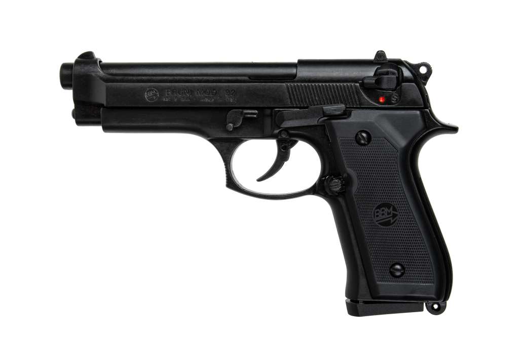 Сигнальний пістолет від компанії Bruni 92 кал.9 РАК є копією знаменитої у всьому світі Beretta 92. Цей пристрій призначений для відстрілу холостих патронів калібру 9мм РАК. Рама та затвор виконані із цинкового сплаву, що імітує вагу пістолета, наближену до оригіналу. Накладки на руків'я виготовлені з полімерних матеріалів. УСМ за способом зводу, подвійної дії (Double Action) - курок можна зводити як вручну, так і при натисканні на спусковий гачок. Також пістолет обладнаний ручним запобіжником.