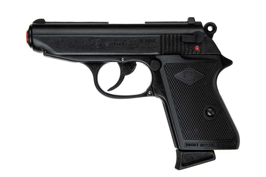Сигнальний пістолет від компанії Bruni New Police кал.9 РАК є копією відомого Walther PPK. Цей пристрій призначений для відстрілу холостих патронів калібру 9мм РАК. Рама та затвор виконані із цинкового сплаву, що імітує вагу пістолета, наближену до оригіналу. Накладки на руків'я виготовлені з полімерних матеріалів. УСМ за способом зводу, подвійної дії (Double Action) - курок можна зводити як вручну, так і при натисканні на спусковий гачок. Також пістолет обладнаний ручним запобіжником.