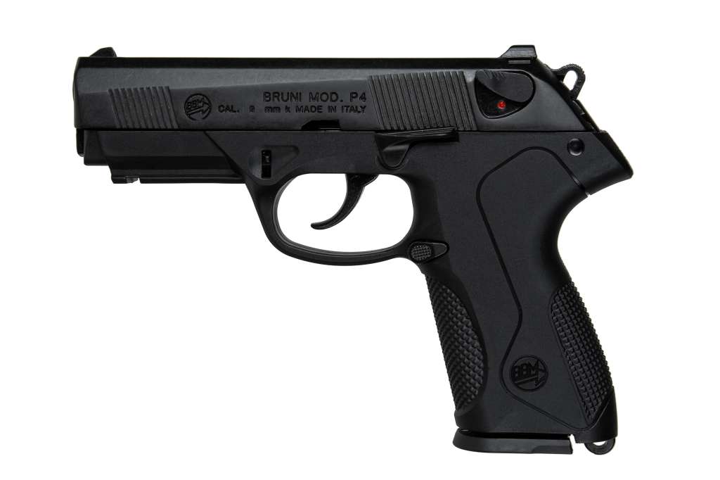 Сигнальний пістолет від компанії Bruni P-4 кал.9 РАК є копією відомого італійського Beretta PX4 Storm. Цей пристрій призначений для відстрілу холостих патронів калібру 9мм РАК. Затвор виконаний із цинкового сплаву, що імітує вагу пістолета, наближену до оригіналу. Рама виготовлена з прочного полімерного матеріалу. УСМ за способом зводу, подвійної дії (Double Action) - курок можна зводити як вручну, так і при натисканні на спусковий гачок. Також пістолет обладнаний ручним запобіжником.