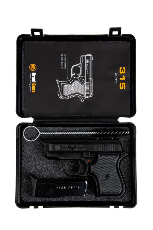 Сигнальний пістолет від компанії Bruni 315 кал.8 є реплікою на міні пістолети Beretta. Цей пристрій призначений для відстрілу холостих патронів калібру 8мм. Рама та затвор виконані із цинкового сплаву, що імітує вагу пістолета, наближену до оригіналу. Накладки на руків'я виготовлені з пластику. УСМ за способом зводу, одинарної дії (Single Action) - натискання на спусковий гачок не зводить курок, а просто робить постріл, зведення курка відбувається за рахунок руху затвору. Також пістолет оснащений ручним запобіжником.