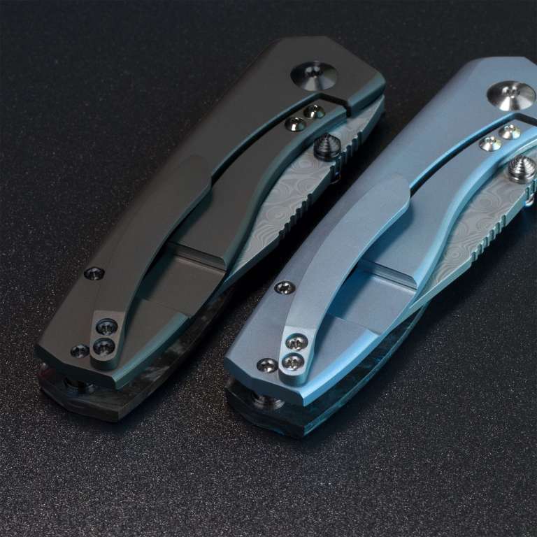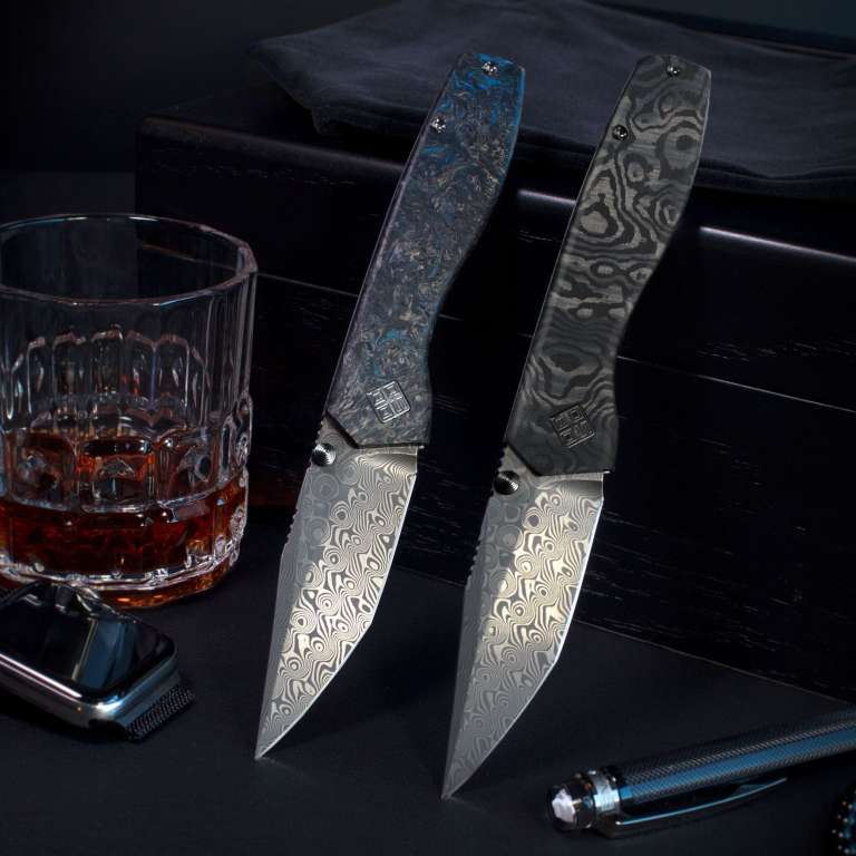 Названий на честь міфологічного грецького місця народження Аполлона та Артеміди, Delos виконаний з німецької дамаської сталі преміум-класу зі 120 шарів візерунка та накладками з титану та Fat Carbon® у кольорах Dark Matter Blue або Black Dunes.