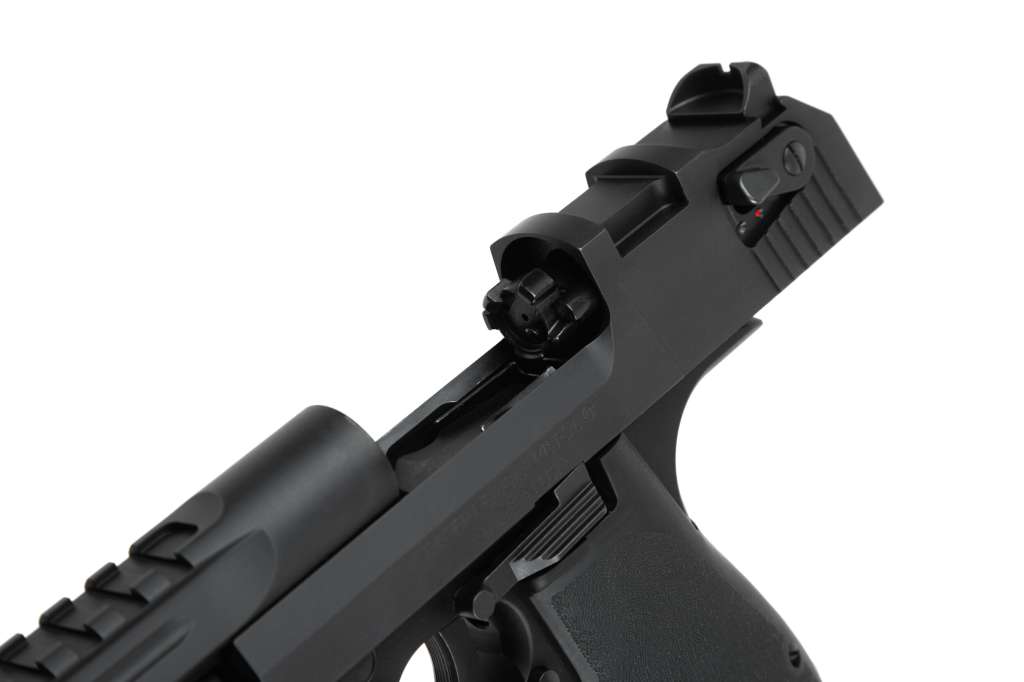 Рама пістолета виконана з алюмінію, а рама затвора зі сталі. У задній частині рами нанесені насічки для покращеного хвату затворної рами. УСМ одностейджевий, із зусиллям натискання на спуск 1,81 кг. Пістолет укомплектований відкритими металевими прицільними пристроями. На рамі встановлено планку Пікатінні. Руків'я виконана з полімеру із зручними виступами під пальці. У комплекті 1 магазин на 7 набоїв. Загальна довжина пістолета 248мм, вага 1,36 кг.