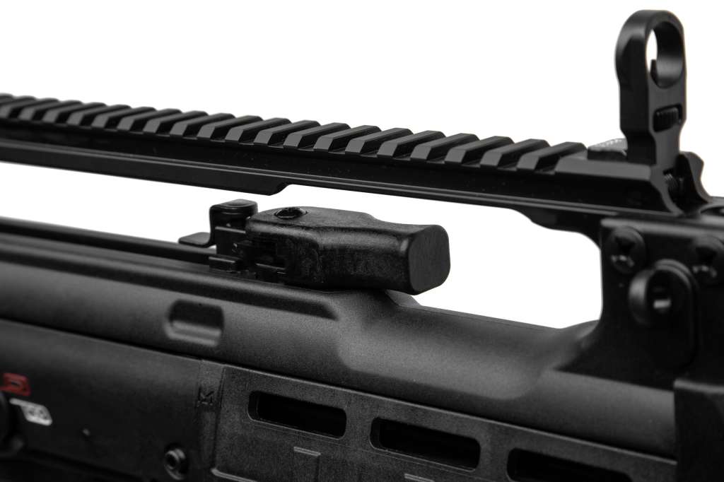 У верхню планку Пікатінні Hellion інтегрований набір міцних та ефективних відкидних прицільних пристроїв. Ці пружинні прицільні пристрої надійно фіксуються до моменту їх відкидання. Безперервна планка Пікатінні проходить по верхній частині Hellion, гарантуючи можливість встановлення оптики на ваш вибір.