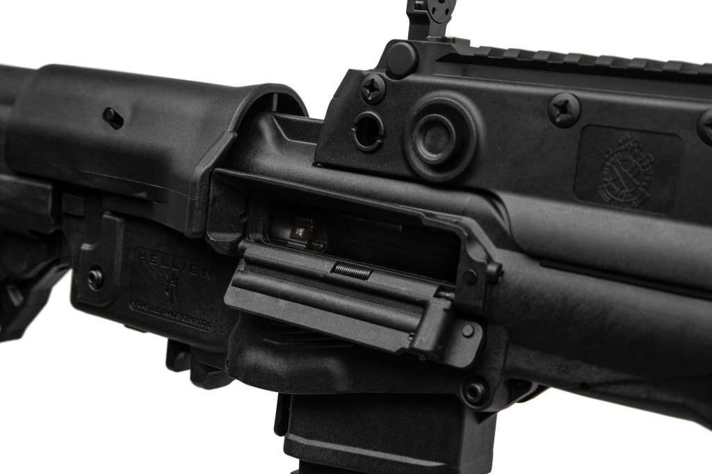 Hellion має реверсивну систему викиду стріляних гільз. Доповнює цю систему набір двосторонніх елементів керування- запобіжник та руків'я заряджання. Результатом є надкомпактний карабін, з якого легко стріляти з будь-якого плеча.