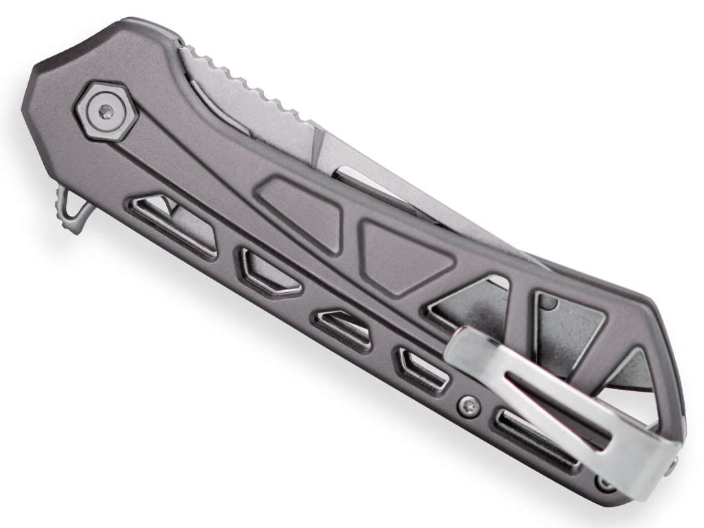 Кліпса: Ніж оснащений міцною кліпсою для носіння на поясі або в кишені, що дозволяє завжди тримати його під рукою.