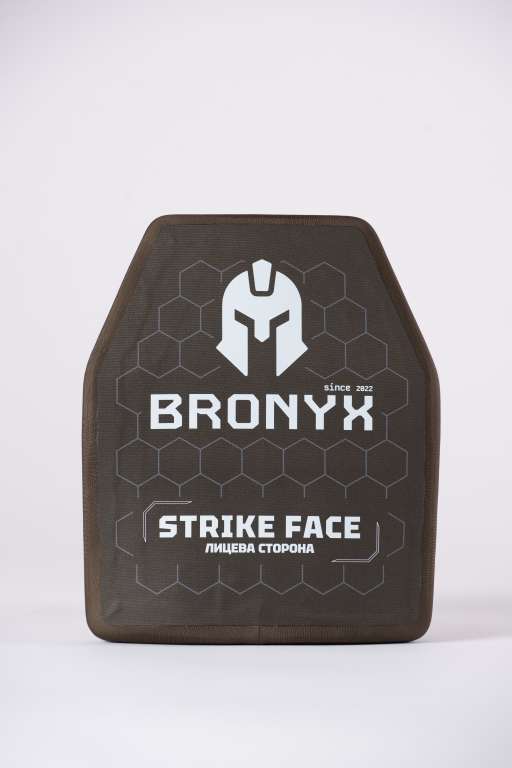 Бронеплити 5 клас захисту Легка та зручна бронеплита 5 класу виготовлена із композиту карбіду кремнію (SiC) та надвисокомолекульярного поліетилену (НВМПЕ), здатна захистити вас від пострілу кулі 57-БЗ-231 (7.62х39 БЗ – бронебійно-запальна), 57-Н-232с (7.62х54 ЛПС) та куль що присутні у нижчих класах ДСТУ 8782:2018, а також від уражень уламками різної величини, рикошетів та шрапнелі. Відповідає 5-му класу захисту згідно ДСТУ 8782:2018 Бронеплита випробувана в сертифікованій лабораторії (витримує по 3 влучання куль 57-БЗ-231 (7.62х39 БЗ – бронебійно-запальна) та 57-Н-232с (7.62х54 ЛПС). з 10 метрів), копія протколу випробувань може надаватися разом із плитами на вимогу покупця. Бронеплити 5 класу захисту виготовляються в трьох розмірах – М(250х305мм), L(260x330мм) та XL (275x350мм) Композит утворюється поєднанням керамічних елементів карбіду кремнію (SiC) та пресованої підкладки з НВМПЕ (надвисокомолекулярного поліетилену). Кожен із матеріалів композиту призначений для виконання відповідної функції при влучанні кулі – керамічний шар працює як руйнівник проникного елементу кулі (переважно це термозміцнене осердя), підкладка з НВМПЕ не дає проникнути залишкам кулі крізь бронеплиту та приймає на себе більшу частину енергії від влучання і розподіляє її рівномірно. Стандартизована форма плити типу Shooter's Cut (тобто зі скошеними кутами) та зручний анатомічний вигин у 2-х площинах. Вигин у двох площинах (технологія 3d multi curved) покращує комфорт при щоденному експлуатації бронеплит, оскільки добре повторює форму грудної клітини, забезпечує максимальне прилягання до тіла та рівномірний розподіл ваги плити. Всі бронеплити Bronyx виготовляютсья на власних виробничих потужностях в Україні М - розмір 250 на 305 мм, вага 2.49 кг, обʼєм грудей до 110 см (+-5 см). Це стандартизований розмір, що підійде для більшості плитоносок. L - розмір 260 на 330 мм, вага 2.9 кг, обʼєм грудей 111-118 см. Це збільшені плити, що підходять до збільшених плитоносок розмірів L/XL, радимо уважно перевіряти розмір кишені для бронеплити. XL - розмір 275 на 350 мм, вага 3.38 кг, обʼєм грудей від 120 см (+-5 см). Це плити максимального розміру, розраховані на великі плитоноски XL, радимо уважно перевіряти розмір кишені для бронеплити. Звертаємо увагу що більші за розміром плити (L та XL) мають таке ж саме компонування як і менші (М) і мають такі ж самі балістичні властивості, більша вага розмірів L та XL є лише показником більшої площі самого бронеелемента. Важливо! Якщо чохол бронежилета не має демпферної підкладки між грудною клітиною та бронеплитою, рекомендуємо використовувати демпфер, що вставляєтсья під бронеплиту в чохол бронежилета. Демпфер допомагає зменшити заперешкодну деформацію, що виникає при влучанні елементів ураження з великою енергією, наприклад кулі 7.62х54 ЛПС.