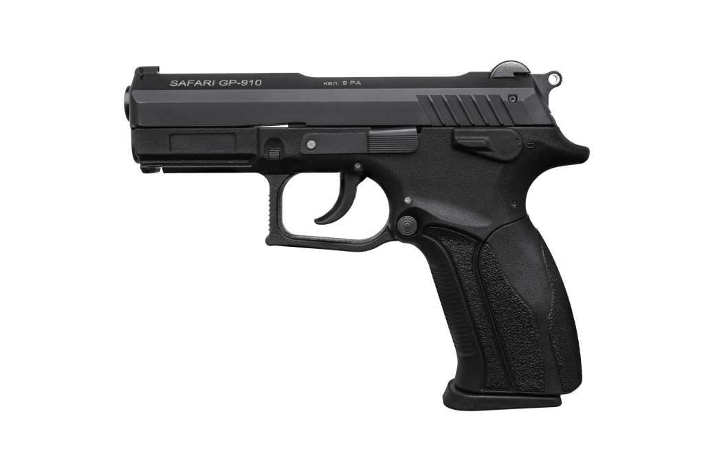 SAFARI GP-910 – полуавтоматический пистолет калибра 9 P.A. для стрельбы пистолетными патронами несмертельного действия.