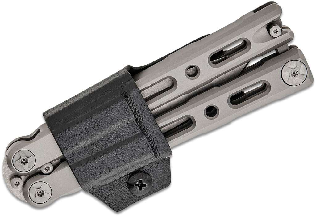Розроблений для любителів "метеликів", які віддають перевагу меншому розміру, 82 Laro - це балісонг середнього розміру, який найкраще описати як зменшену версію повнорозмірного старого-доброго балісонга 85 Ti. Більш зручний для EDC з 9,15-сантиметровим лезом з нержавіючої сталі марки CPM-MagnaCut, що заточене за технологією SelectEdge, з обробкою Stonewash та гладким вигнутим профілем леза типу drop-point, Laro оснащений підшипниковим шарніром для швидкого та плавного обертання, а також фрезерованими титановими ручками. Магнітний замок утримує клямку осторонь під час маніпуляцій з рукоятками. Коли ви не перевертаєте цей бездоганний балісонг, використовуйте чорні піхви Boltaron з кишеньковим затиском для зручного щоденного носіння.