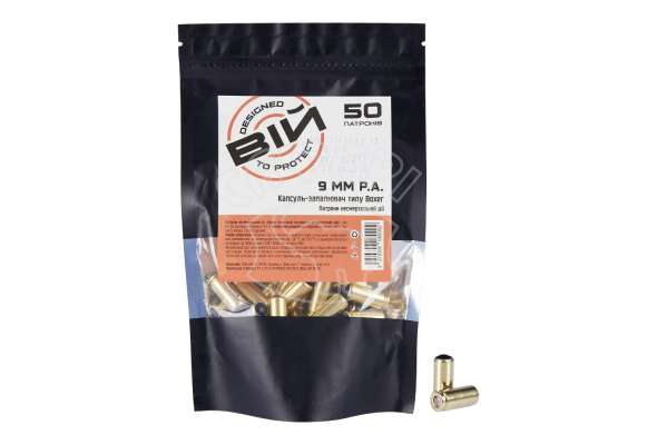 Патрон Вій - надійний, точний, стабільний травматичний патрон. Маса метального снаряда 0.6 г. Потужність не більше 40 Дж на відстані 3,5 м від дульного зрізу. Початкова швидкість становить не більше 380 метрів в секунду на відстані 3,5 м від дульного зрізу. Відповідає умовам СОУ 78-41-016:2013. Зберігає відмінну купчастість навіть на відстані понад 7 м. Зібраний з імпортних комплектуючих високої якості.