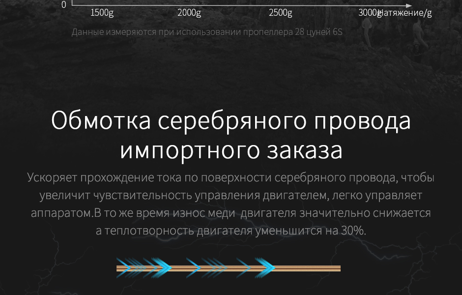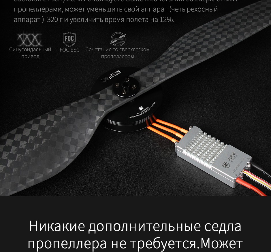 | Вес двигателя (с проводом) | 273g | Пропеллера рекомендации | 28-30" / 22" |