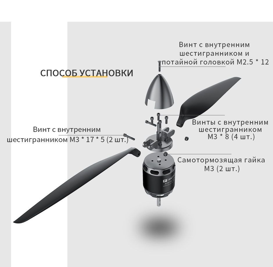 • Сочетание с двигателем и электрическим регулятором с фиксированными крылами T-MOTOR.