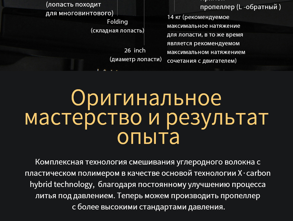| Шar винтa | 9.4дюймa(239.5mm) | Maстepство матeриaла | yглеродное волокно + смолa |