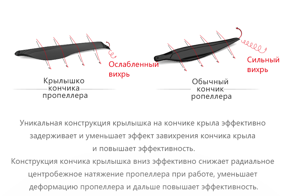 (3)Прочность конструкции пропеллера была полностьо проверена. Используйте его разумно в пределах диапазона максимального натяжения рекомендации. Eсли превышает предел натяжения, то повредит лопасть; не проверяйте прочность лопасти методом изгиба от руки и т. д. Данный метод значительно отличается от фактической силы поддержки полета, также может привести к повреждению лопасти.