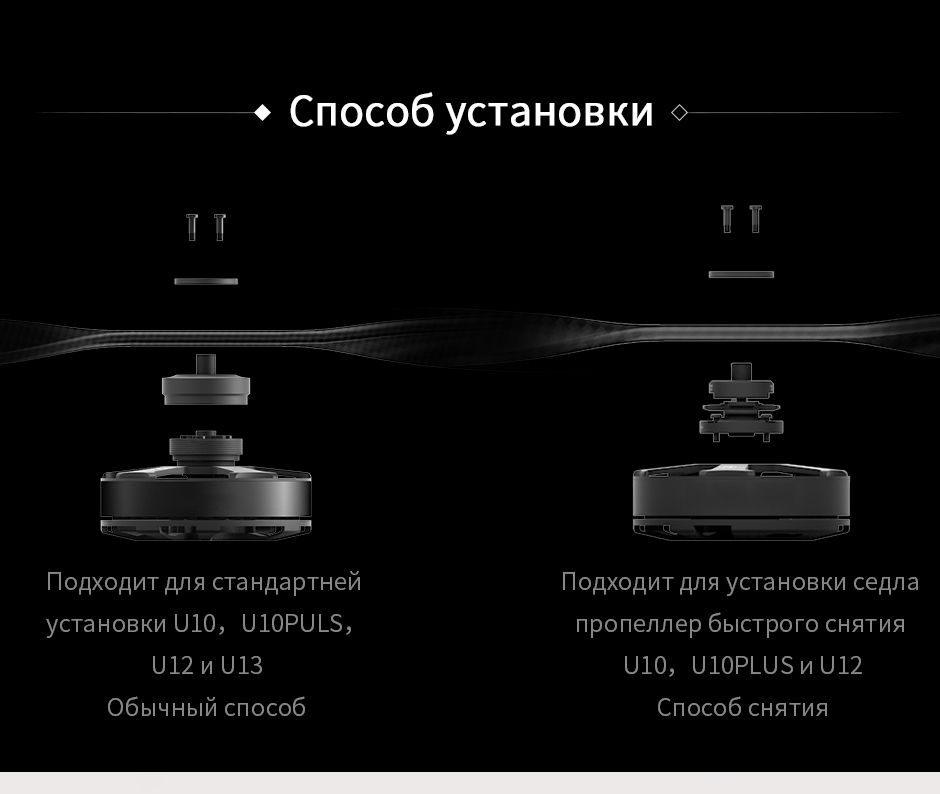 (1)Пpопeллep и двигатель врашатся по часовой стрелке(вид сверху) при использовании пропеллера с буKвой «L» позади типа; Пропеллер и двигатель вращактся против часовой стрелки (вид) при использовании пропеллера с буквой R»позади типа;