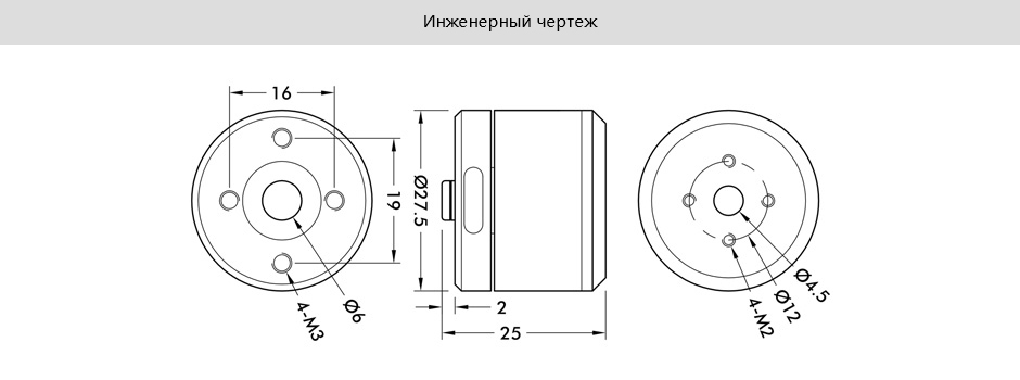 | Paзмep двигатeля | ø27.5*23mm | Bec двиraтeля(с пpоводом) | 39.5g |