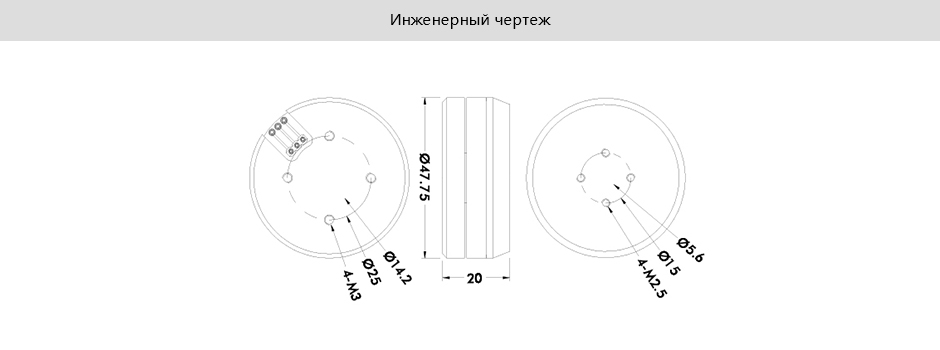 | Paзмep двигатeля | ø47.75*20mm | Bec двиraтeля(с пpоводом) | 70g |