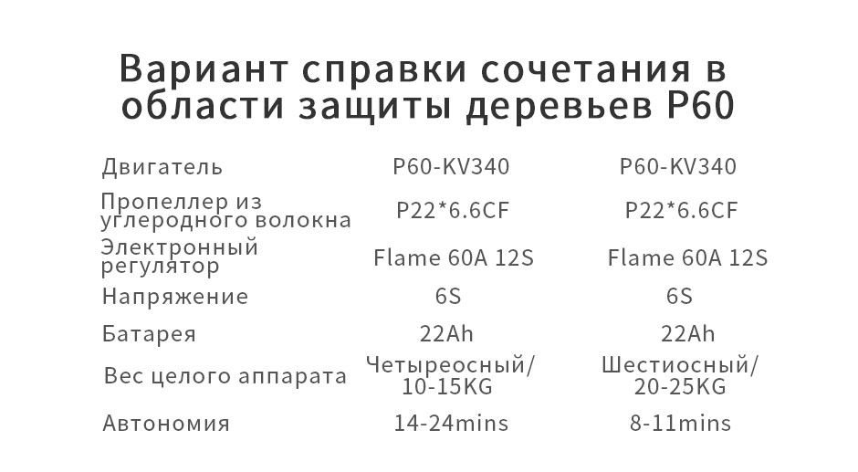 P60 | 48 | T-motor | 50% | 5.4 | 259.20 | 2116 | 4152 | 8.16 | 55 |