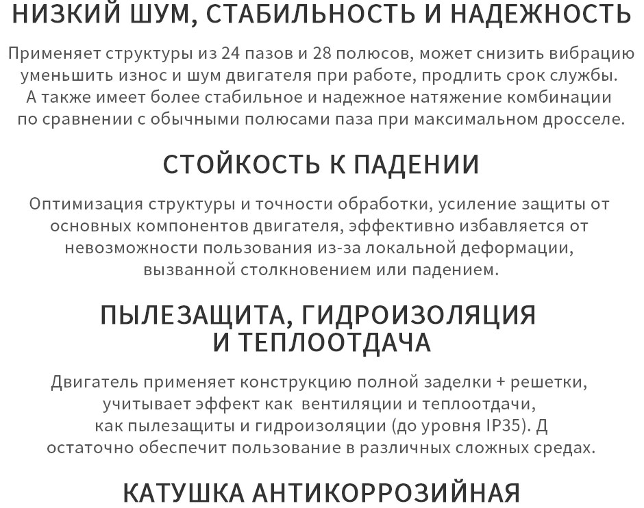 | Bec бaтapeи (c npoвoдoM) | 375g | Bec двиrатeлЯ (бeз пpoвoдa) | 345g |