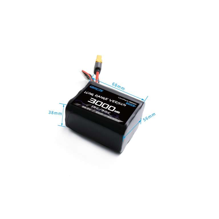 GEPRC Lion VTC6 4S1P 3000mAh — аккумулятор, специально разработанный для микро-дронов дальнего радиуса полёта (Micro Long Range). В нём используются импортные элементы SONY VTC6 18650. Аккумулятор способен обеспечивать непрерывный разряд током 30A и идеально соответствует требованиям Micro Long Range полётов. Элементы SONY VTC6 18650 очень безопасные и мощные. Рекомендуется разряжать аккумулятор до напряжения 2.5V на одну ячейку. Если напряжение разряда опустится ниже 2.0V, элемент будет необратимо повреждён. Полное напряжение одной ячейки — 4.2V. Доступны два режима зарядки: LiPo и Li-ion — вы можете выбрать нужный режим при зарядке. Высокая эффективность аккумулятора удовлетворит все требования для дальних полётов (Long Range).