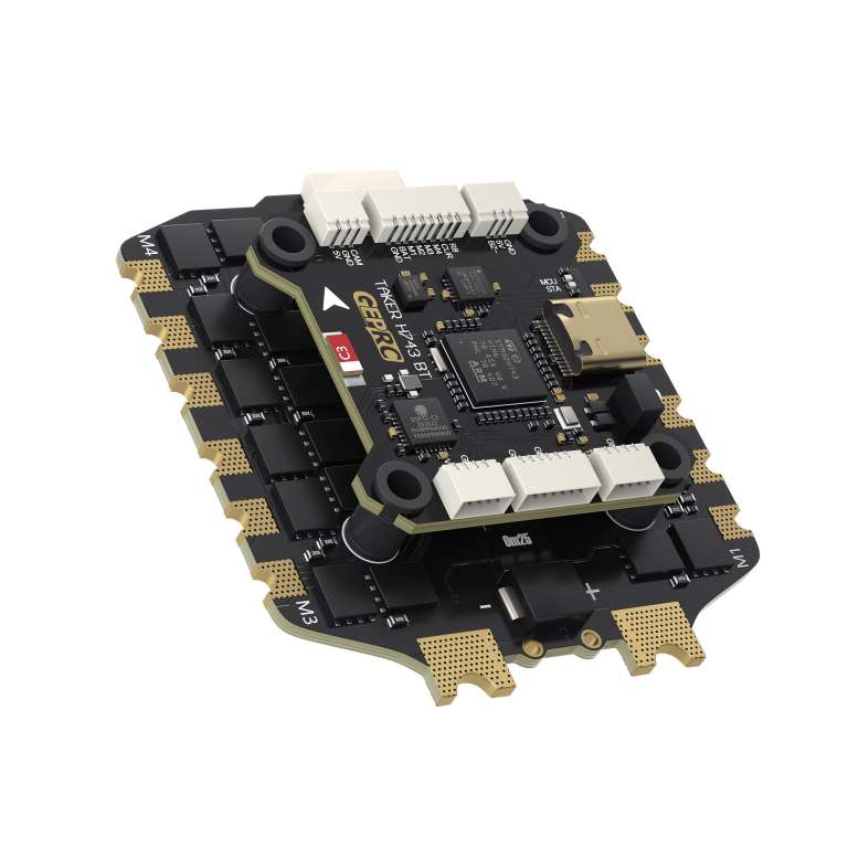 TAKER H743 BT 8Bit 80A STACK is the latest Stack system developed by the GEPRC team. It features a high-performance STM32H743VIH6 chip with a Cortex-M7 core running at up to 480MHz, handling both racing and freestyle flights with ease. Its dual gyroscope setup, using MPU6000 and ICM42688-P, ensures precise control. With integrated Bluetooth for wireless parameter adjustments and a built-in 512MB black box, it’s well-equipped. It also offers eight motor output ports and is compatible with X8 models.
