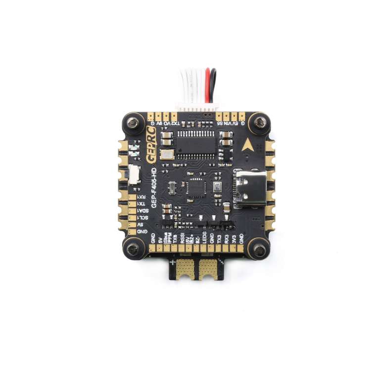 GEP-F405-HD is a plug-and-play flight controller with F405 chip and a tower flight system with BLheli_32 50A 4 and 1 32-bit electrical modulation. It integrates 16Mb black box, MPU6000 gyroscope and barometer for a more delicate hand experience.
