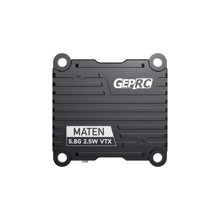 The MATEN 5.8G 2.5W VTX high-power image transmission newly developed by the GEPRC team is now officially released. Its performance is very powerful, with 5 adjustable power levels and a maximum power of up to 2500mW.The transmission signal is very stable and the penetration ability is excellent.