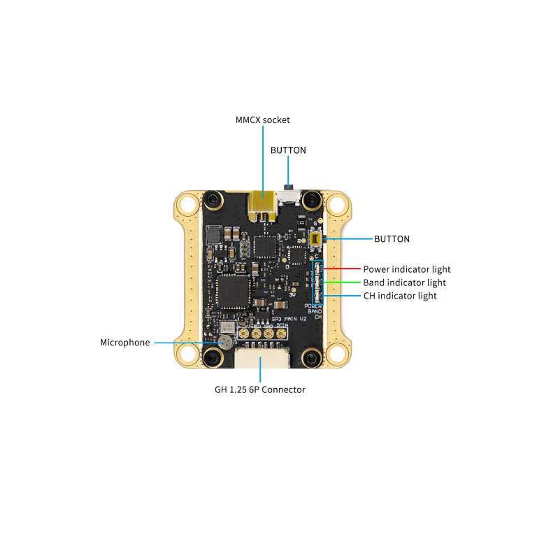 Рад представить новую разработку GEPRC — RAD VTX 1.6W. Это сверхмощный видеопередатчик (VTX) с максимальной мощностью 1600 мВт и пятью регулируемыми режимами: Pit/25mW/200mW/600mW/1600mW. RAD использует двухслойную конструкцию PCB, которая отделяет питание от основной платы, что помогает снизить и экранировать помехи. Двухслойная структура также обеспечивает лучшее теплоотведение. На плате VTX встроен микрофон, поддерживается входное напряжение 7–36V (аккумуляторы 2–8S), используется популярный разъём MMCX, а монтажные отверстия — 30.5×30.5 мм.