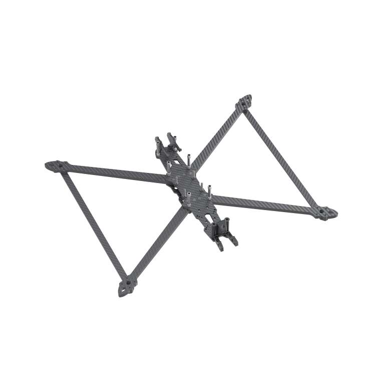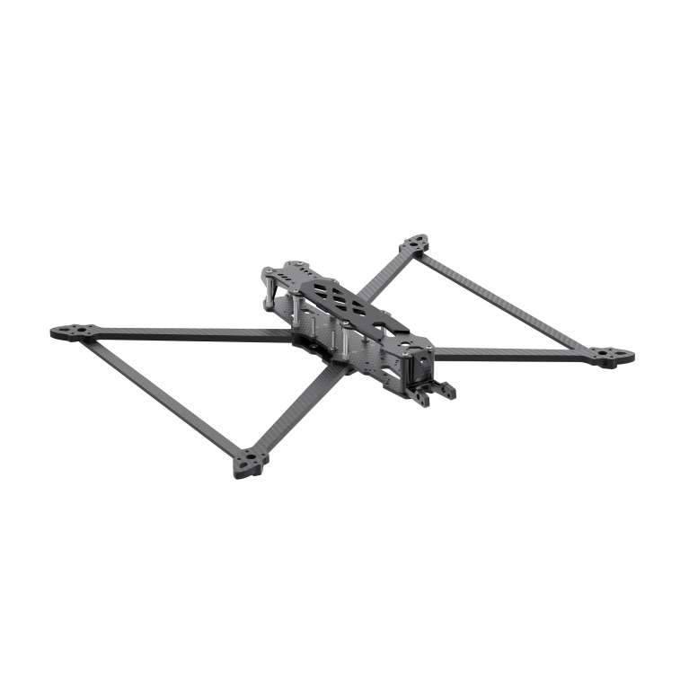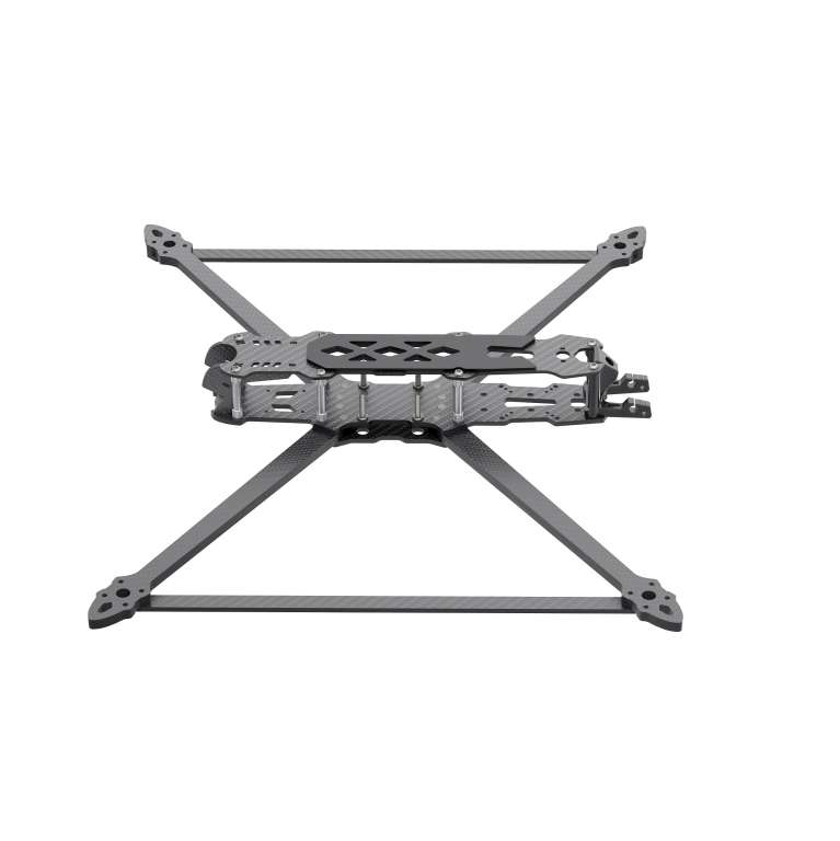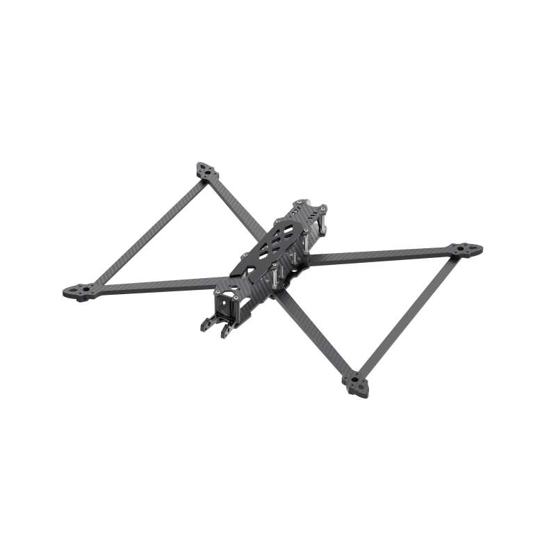 The FC fixing hole size is 30.5×30.5mm(M3), Camera lens fixing hole size is19x19mm(M2), Motor fixing hole size is 19x19mm(M3). Reserved enough space for VTX installation at the end of the frame, and the extended dimension frame can mount up to LiPo 6S 8000mah battery.